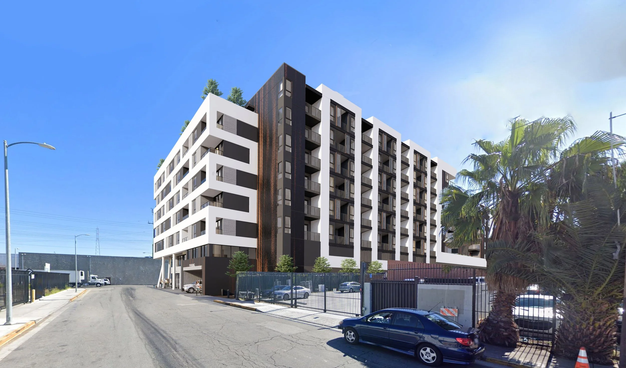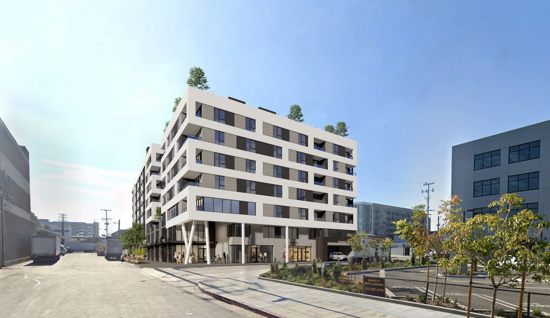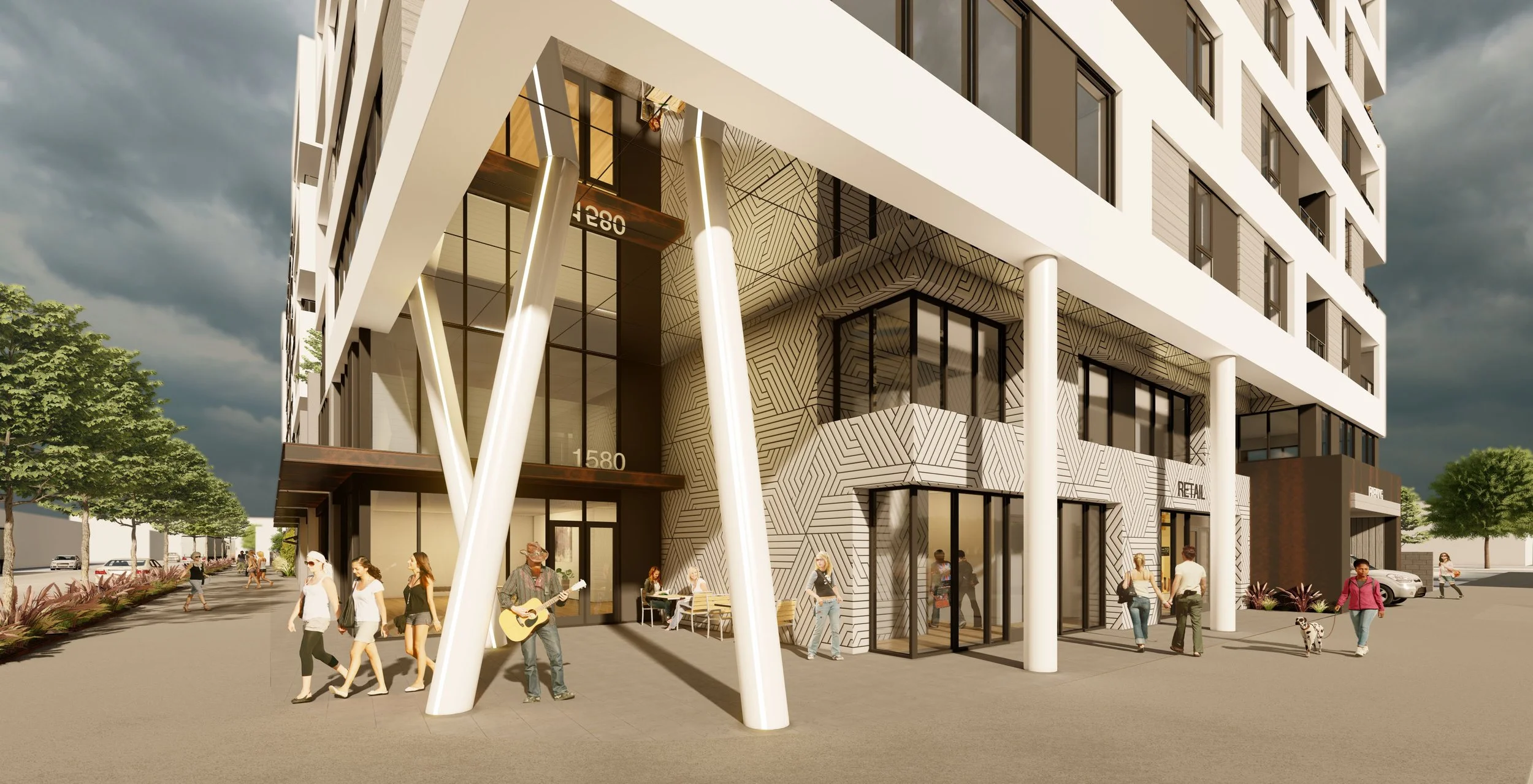 Program | 180 Residential Units, Amenity Rooms, Covered Plaza, Retail & Roof Decks.